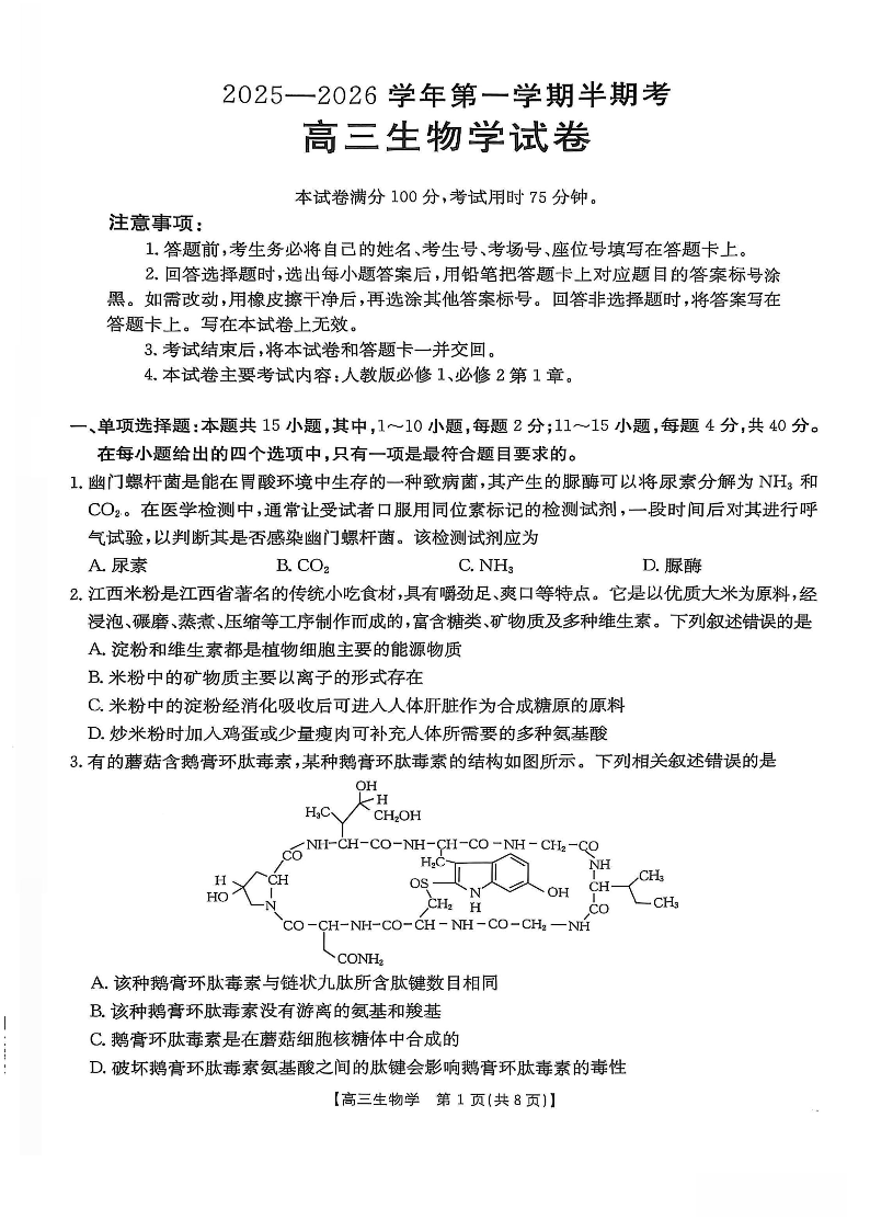 福建省2025-2026学年第一学期半期考 生物.pdf