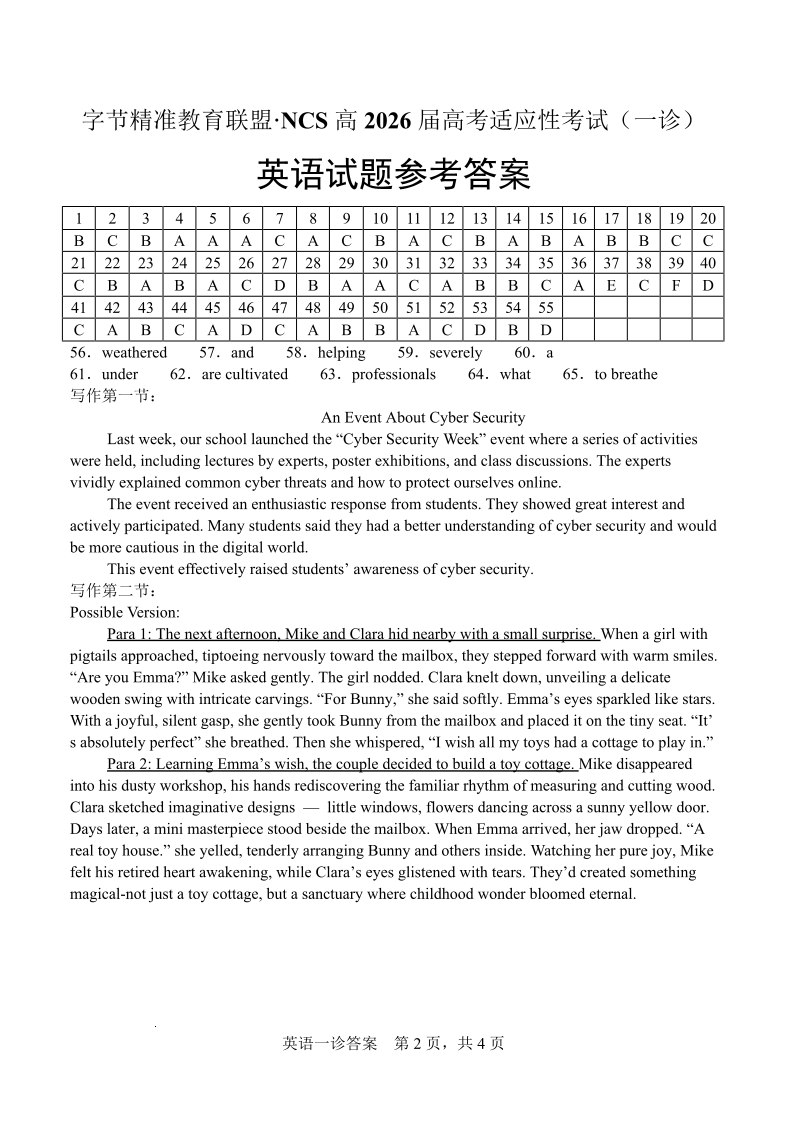 字节精准教育联盟·NCS高2026届高考适应性考试(一诊)英语答案.pdf