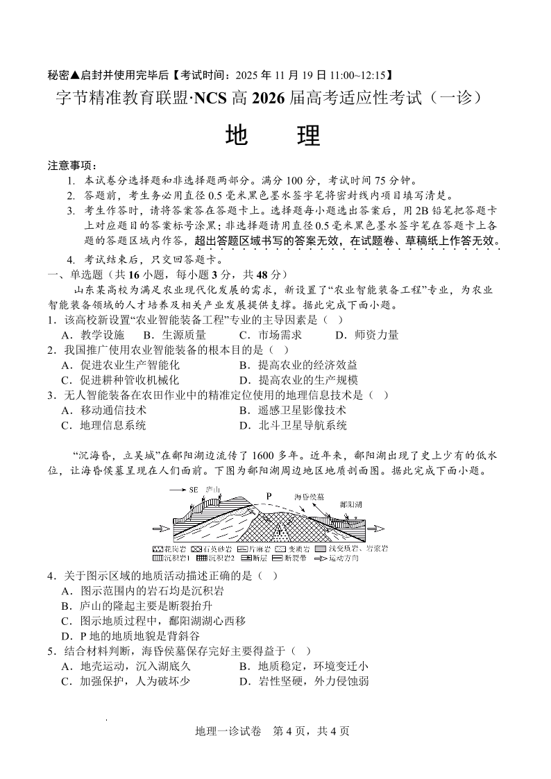 字节精准教育联盟·NCS高2026届高考适应性考试(一诊)地理.pdf