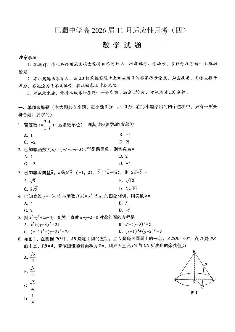 巴蜀中学2026届高考适应性月考卷(四)数学.pdf
