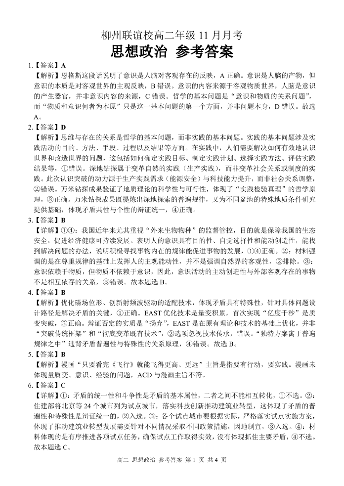 柳州联谊校2025-11月考 高二政治答案.pdf