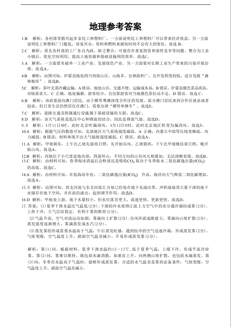 河北省唐山市十校2025-2026学年高三年级上学期期中考试 地理答案.docx