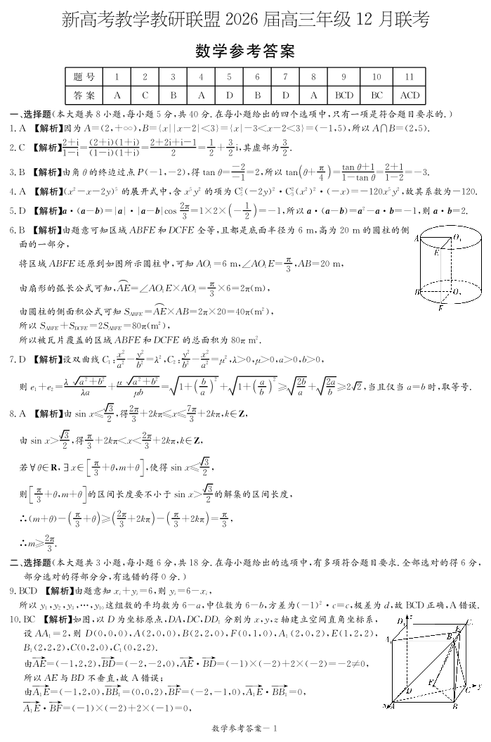 新高考教学教研联盟(长郡二十校)2026届高三年级12月联考 数学答案.pdf