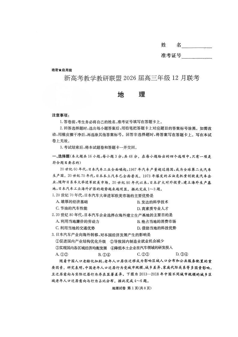 新高考教学教研联盟(长郡二十校)2026届高三年级12月联考 地理.pdf
