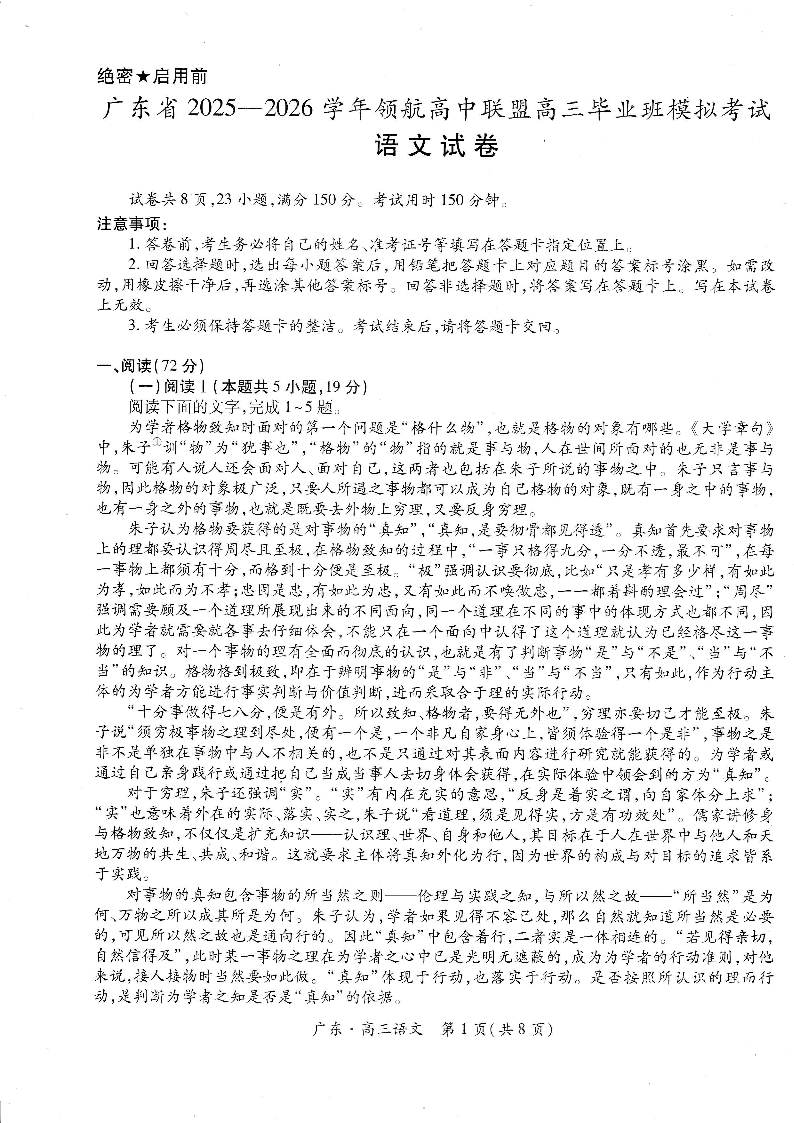 广东省2025—2026学年领航高中联盟高三毕业班模拟考试 语文.pdf