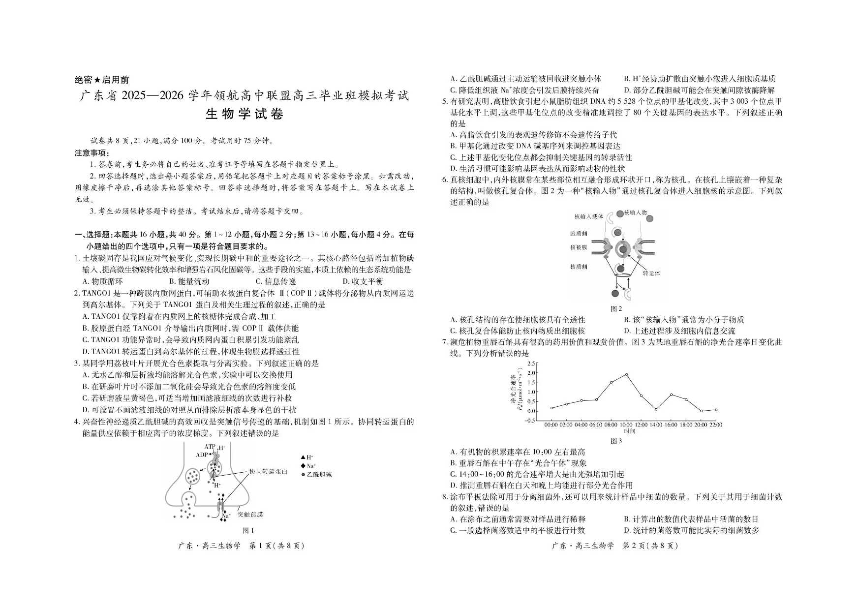 广东省2025—2026学年领航高中联盟高三毕业班模拟考试 生物.pdf