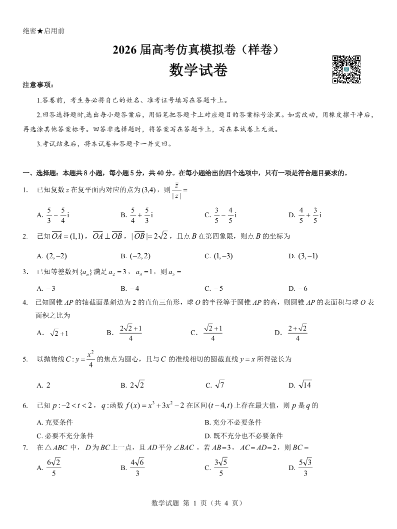 名校教研联盟 2026样卷-数学.pdf