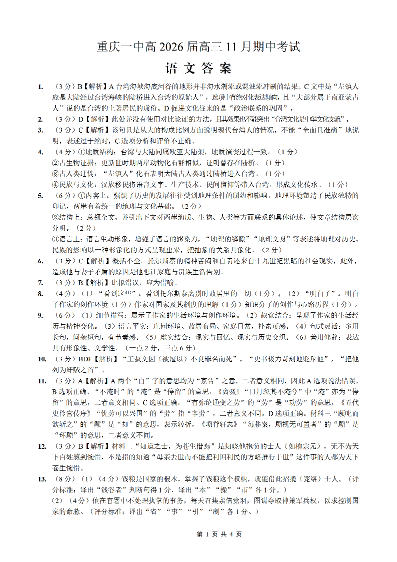 重庆市第一中学校2025-2026学年高三上学期11月月考 语文答案.pdf