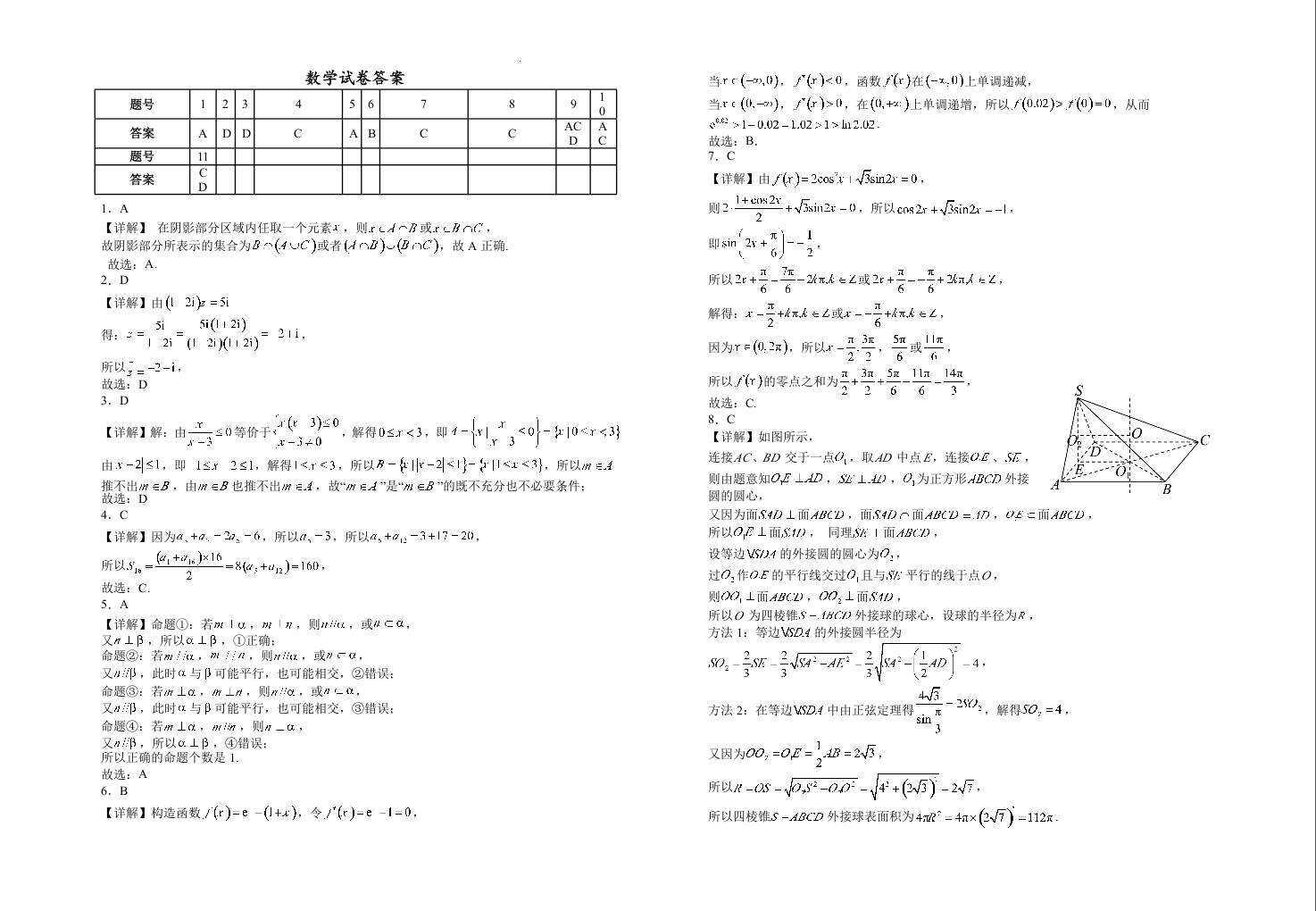 宁夏银川第一中学2026届高三上学期期中考试 数学答案.docx