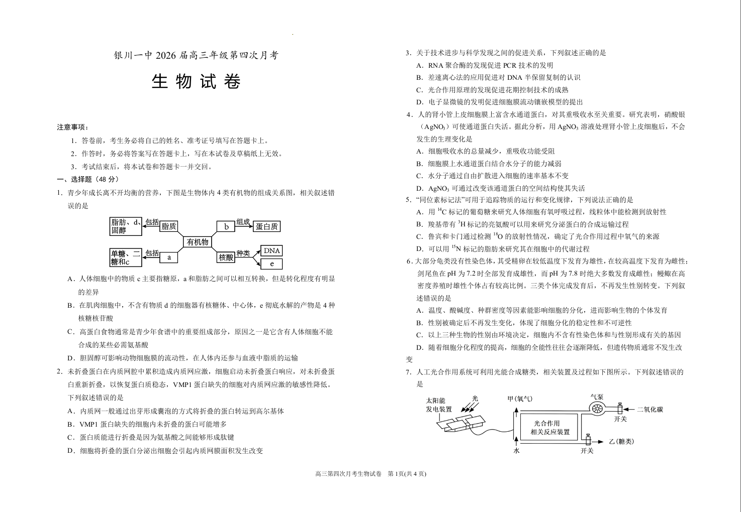 宁夏银川第一中学2026届高三上学期期中考试 生物.docx