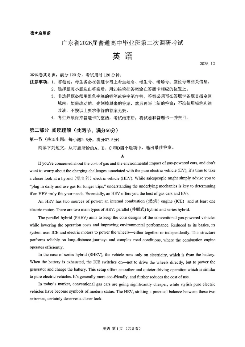 光大联考2026届普通高中毕业班第二次调研考试 英语.pdf