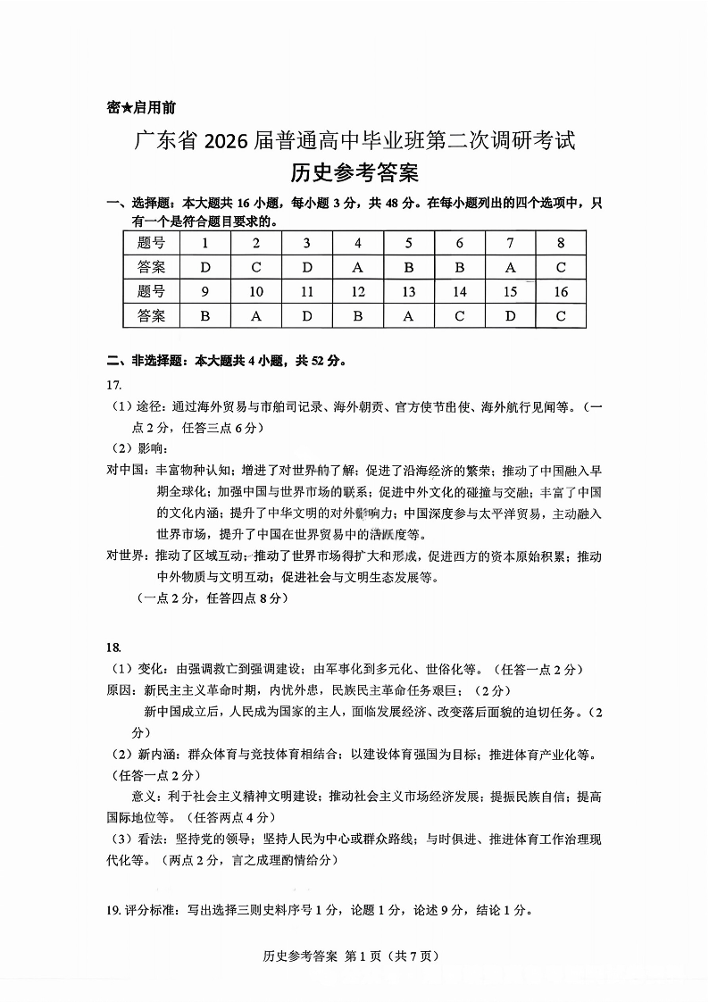 光大联考2026届普通高中毕业班第二次调研考试 历史答案.pdf