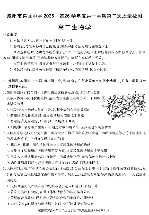 陕西省咸阳市实验中学2025-2026学年高二上学期第二次质量检测 生物.pdf