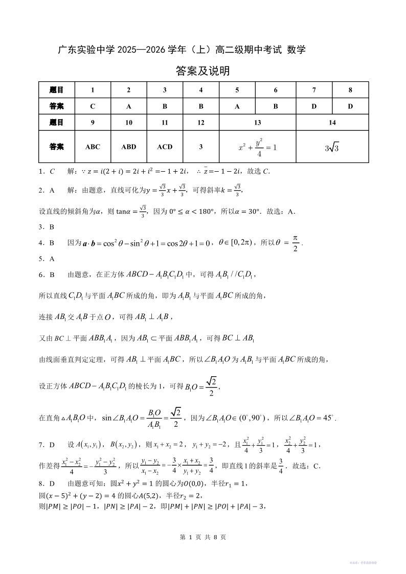 广东省实验中学2025-2026学年高二上学期期中考试 数学答案.pdf