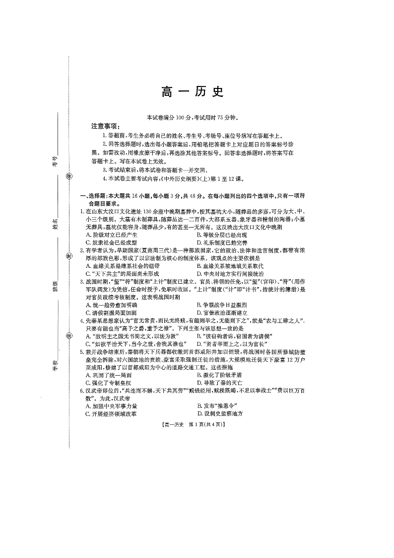 广东省揭阳市部分学校2025-2026学年高一上学期期中联考 历史试题(含答案).pdf