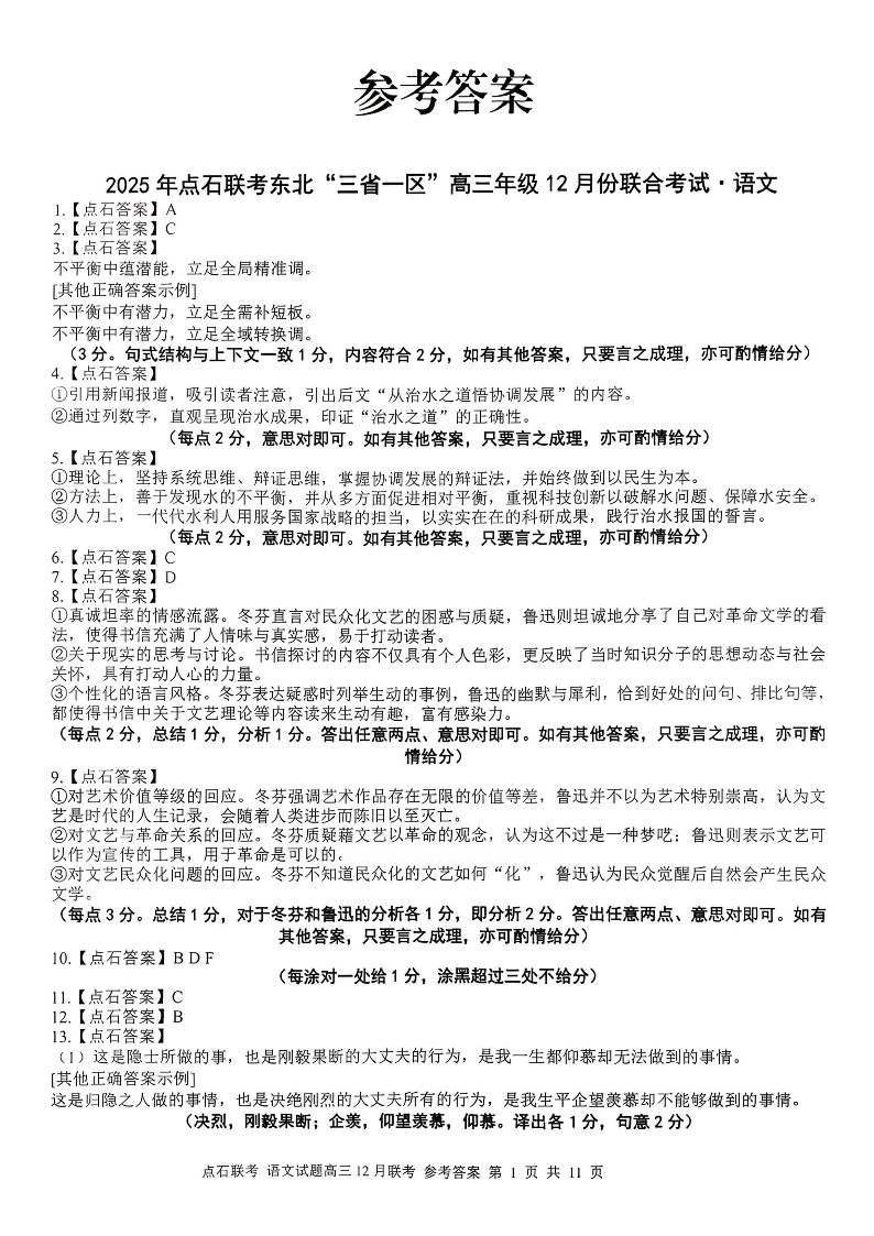 2025年点石联考东北“三省一区”高三年级12月份联合考试 语文答案.pdf