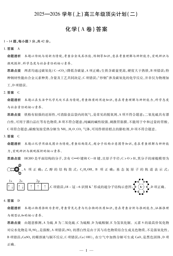 化学A卷-高三顶尖计划(二)详细答案.pdf