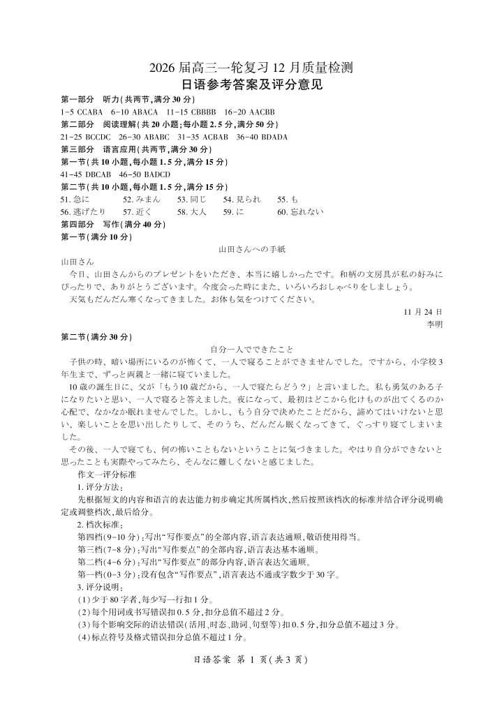 四川省百师联盟2026届高三一轮复习12月质量检测 日语答案.pdf