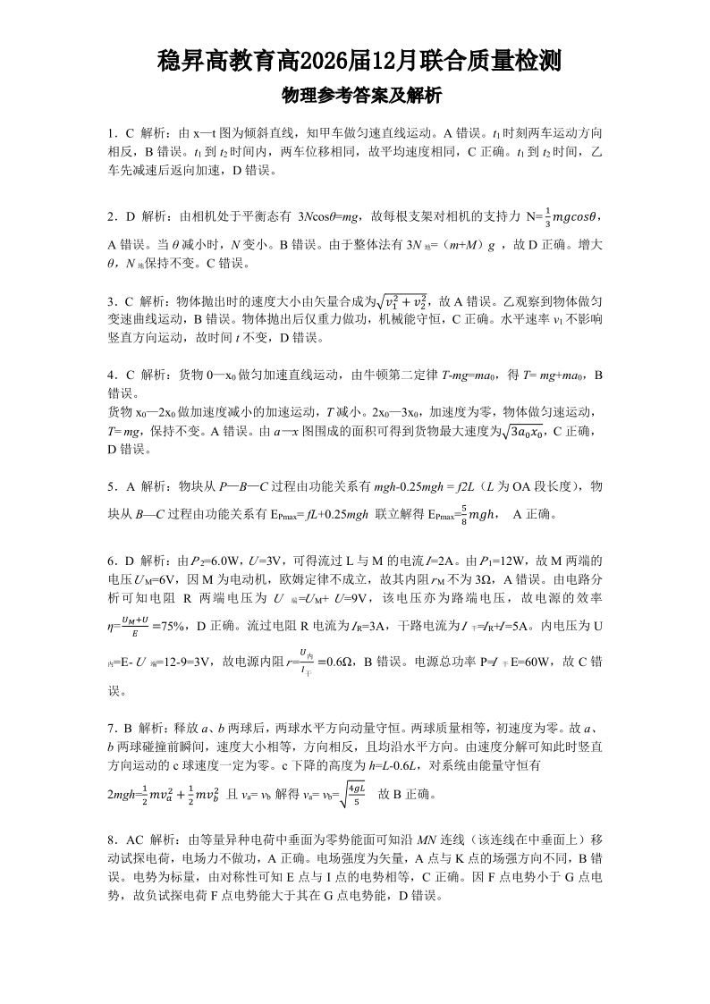 稳昇高教育2025-2026学年(上)高2026届12月联考 物理答案.pdf