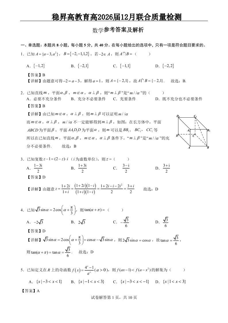 稳昇高教育2025-2026学年(上)高2026届12月联考 数学答案.pdf