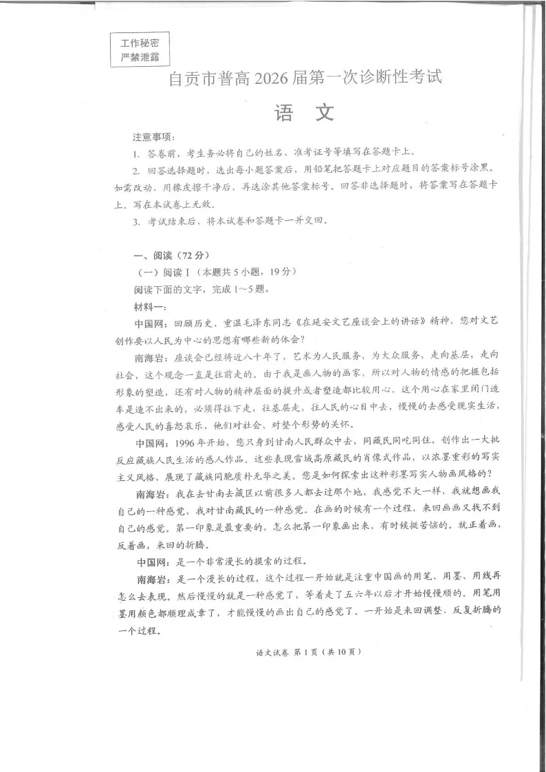 四川省自贡市普高2026届第一次诊断性考试 语文.pdf