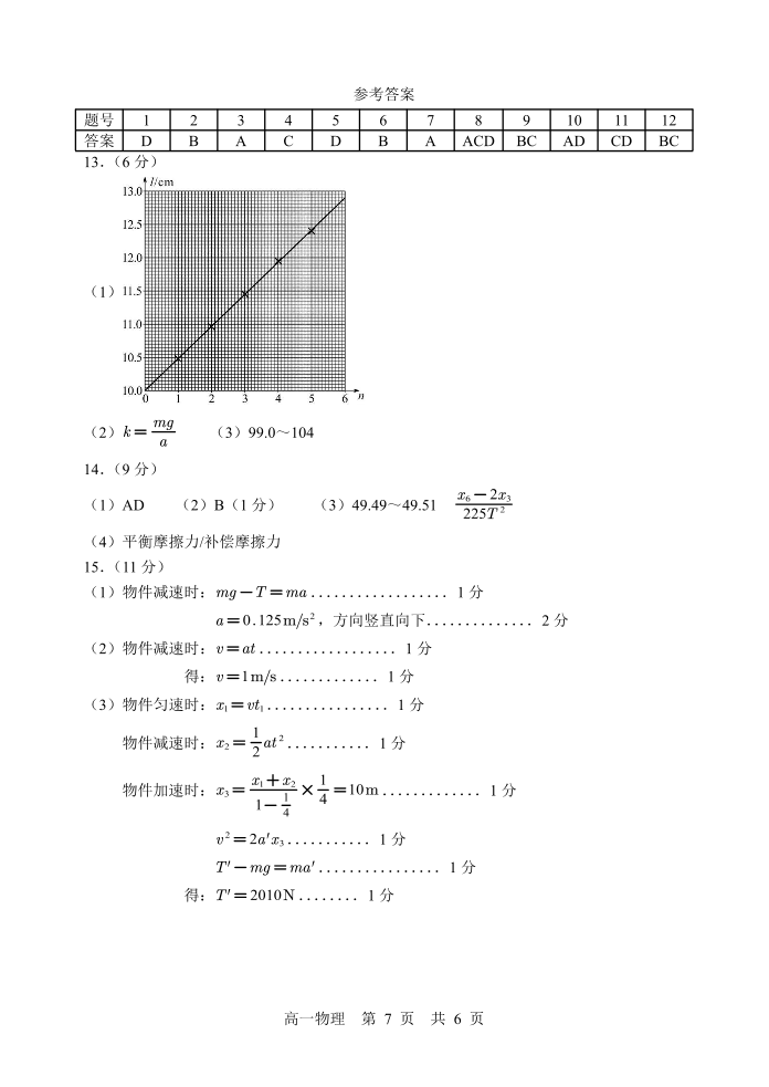 广东省汕头市金山中学2025-2026学年高一上学期期中考试 物理答案.pdf