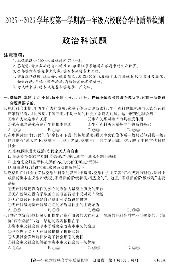 广东省六校2025-2026学年高一上学期12月联合学业质量检测 政治.pdf