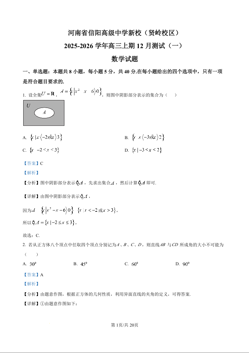 河南省信阳高级中学2025-2026学年高三上期12月测试(一)数学答案.docx