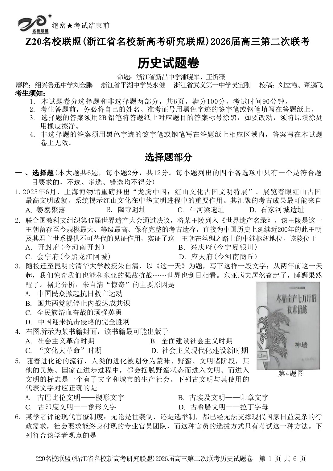 历史试题-Z20名校联盟(浙江省名校新高考研究联盟)2026届高三第二次联考.pdf