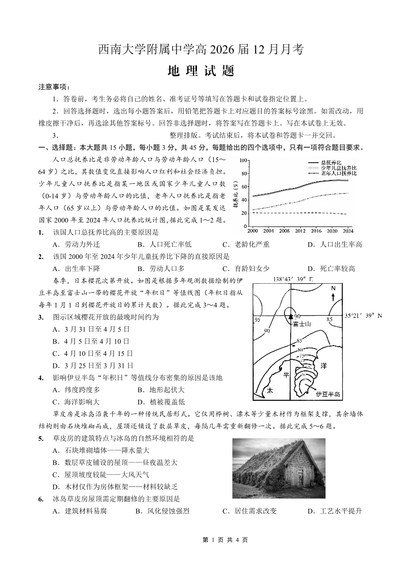 重庆西南大学附属中学高2026届高三12月月考 地理.pdf