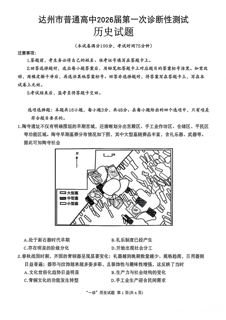 达州市普通高中2026届第一次诊断性测试 历史.pdf