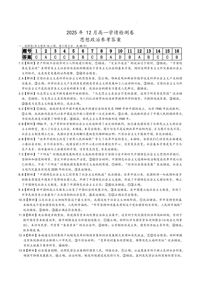 湖南省新高考教学教研联盟(长郡20校)2025年12月高一学情检测 政治答案.pdf