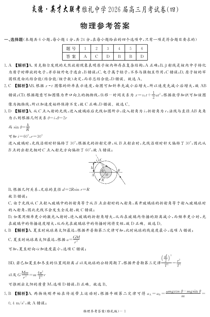 雅礼中学2026届高三月考试卷(四)物理答案.pdf