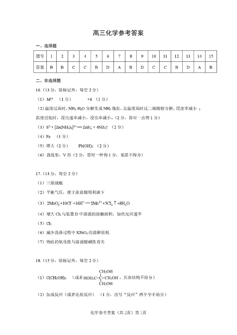 湖北省楚天协作体2025-2026学年高三上学期12月联考 化学答案.pdf