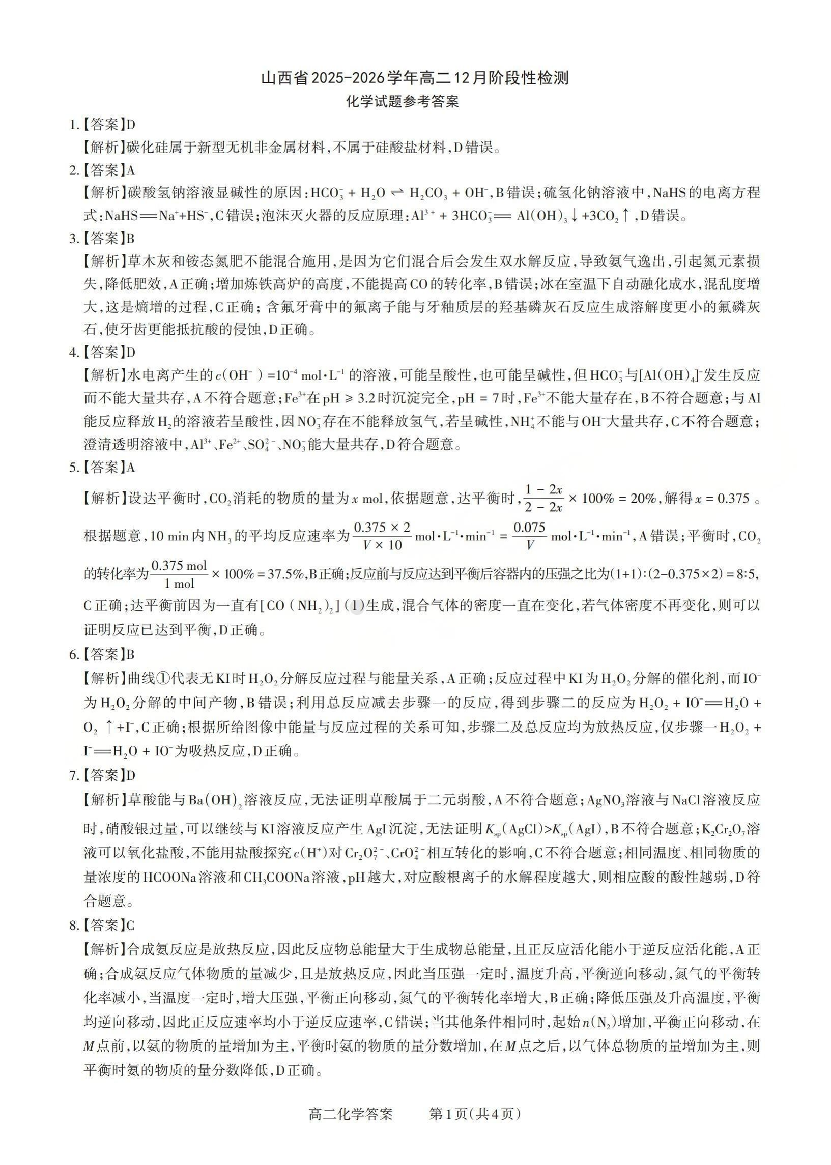 山西省三重教育2025-2026学年高二12月阶段性检测 化学答案.pdf