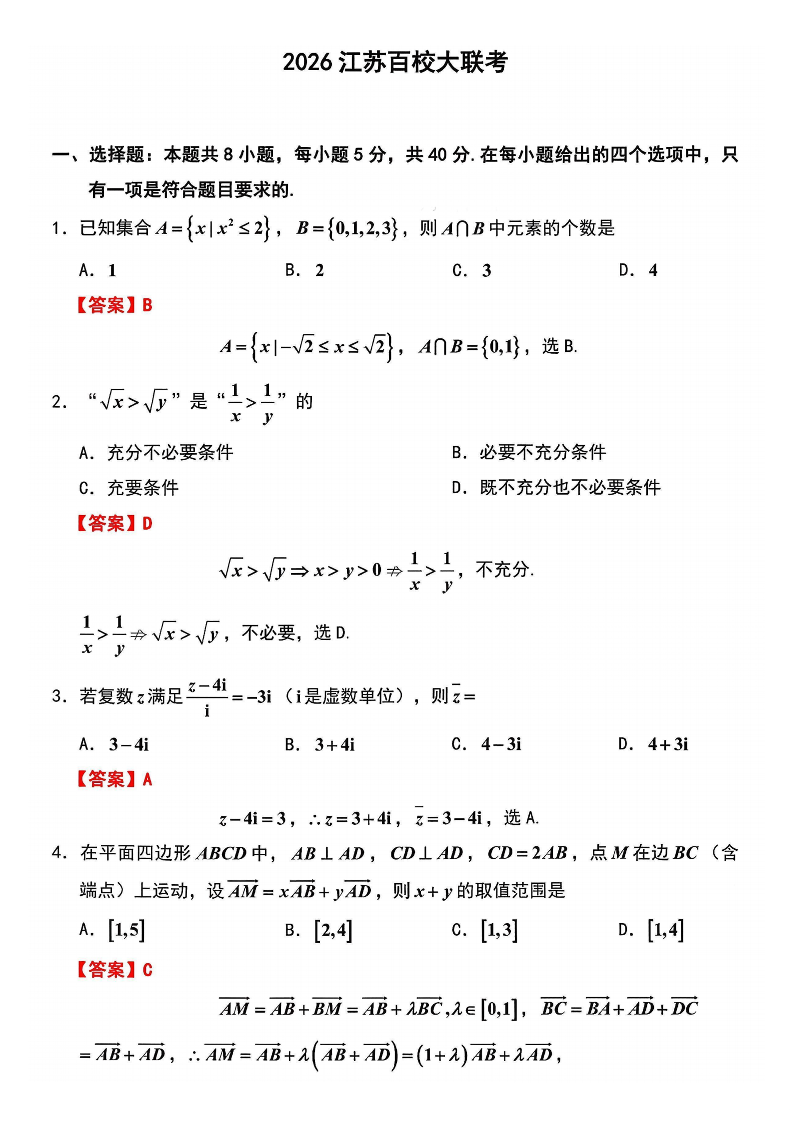 江苏省百校2026届高三年级上学期12月联考 数学答案.pdf