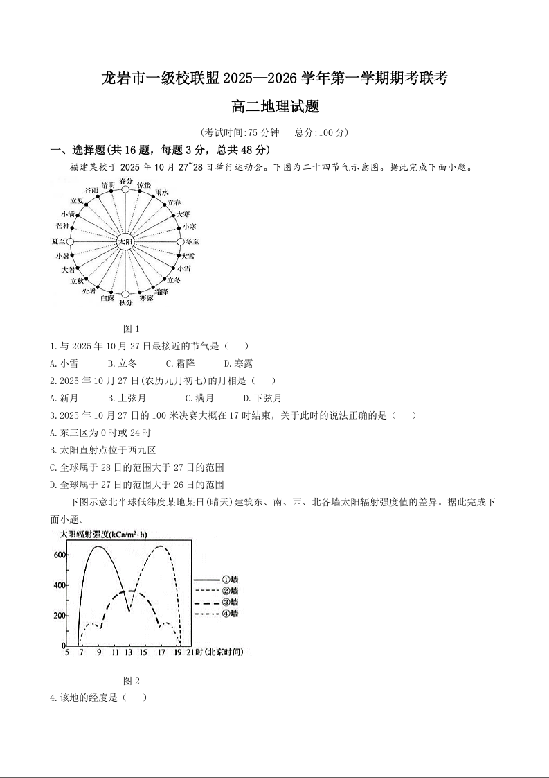 福建省龙岩市一级校盟2025-2026学年高二上学期期中联考 地理试题(含答案).docx