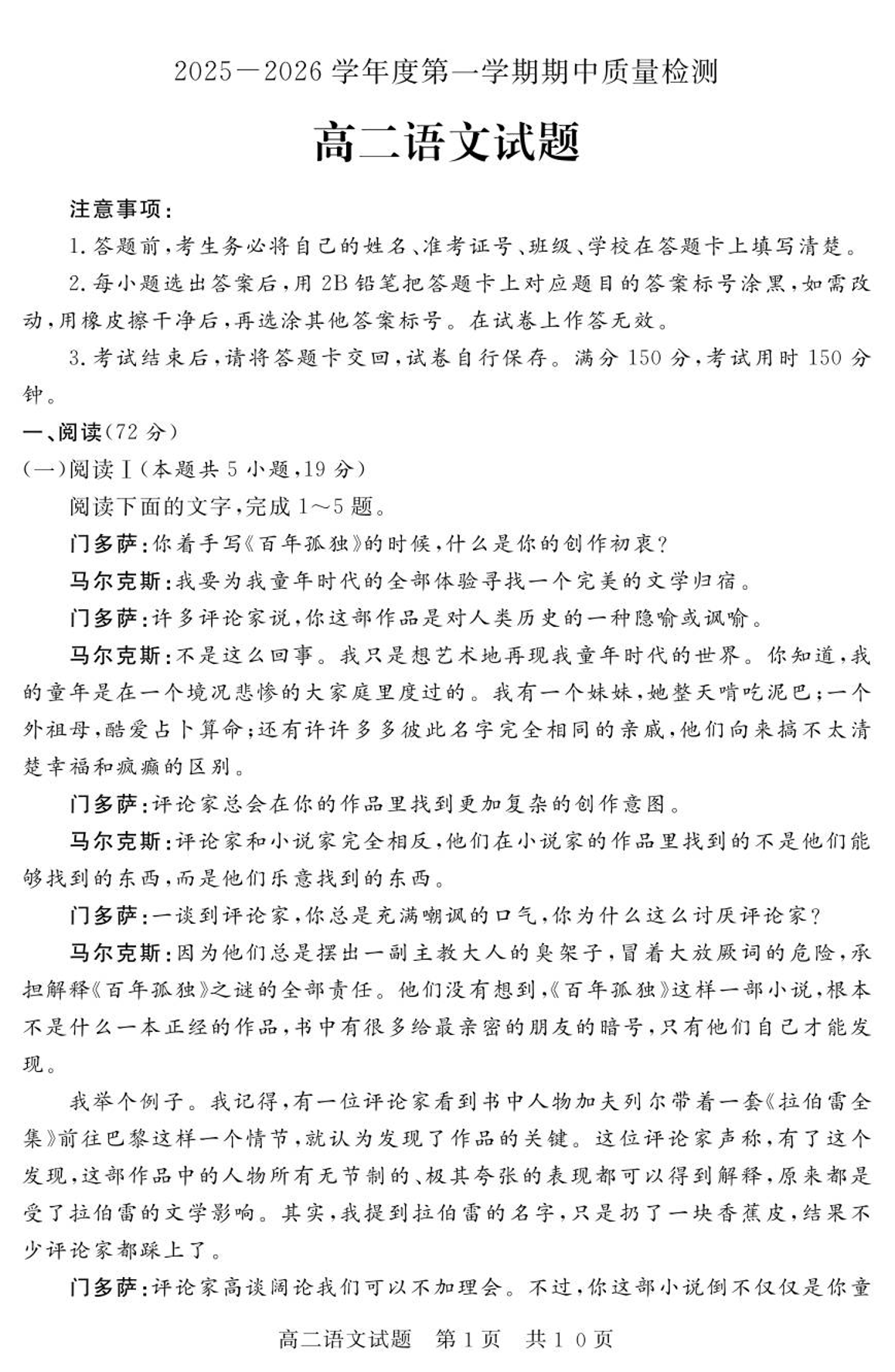 山东省济宁市兖州区2025-2026学年高二上学期期中质量检测 语文.pdf
