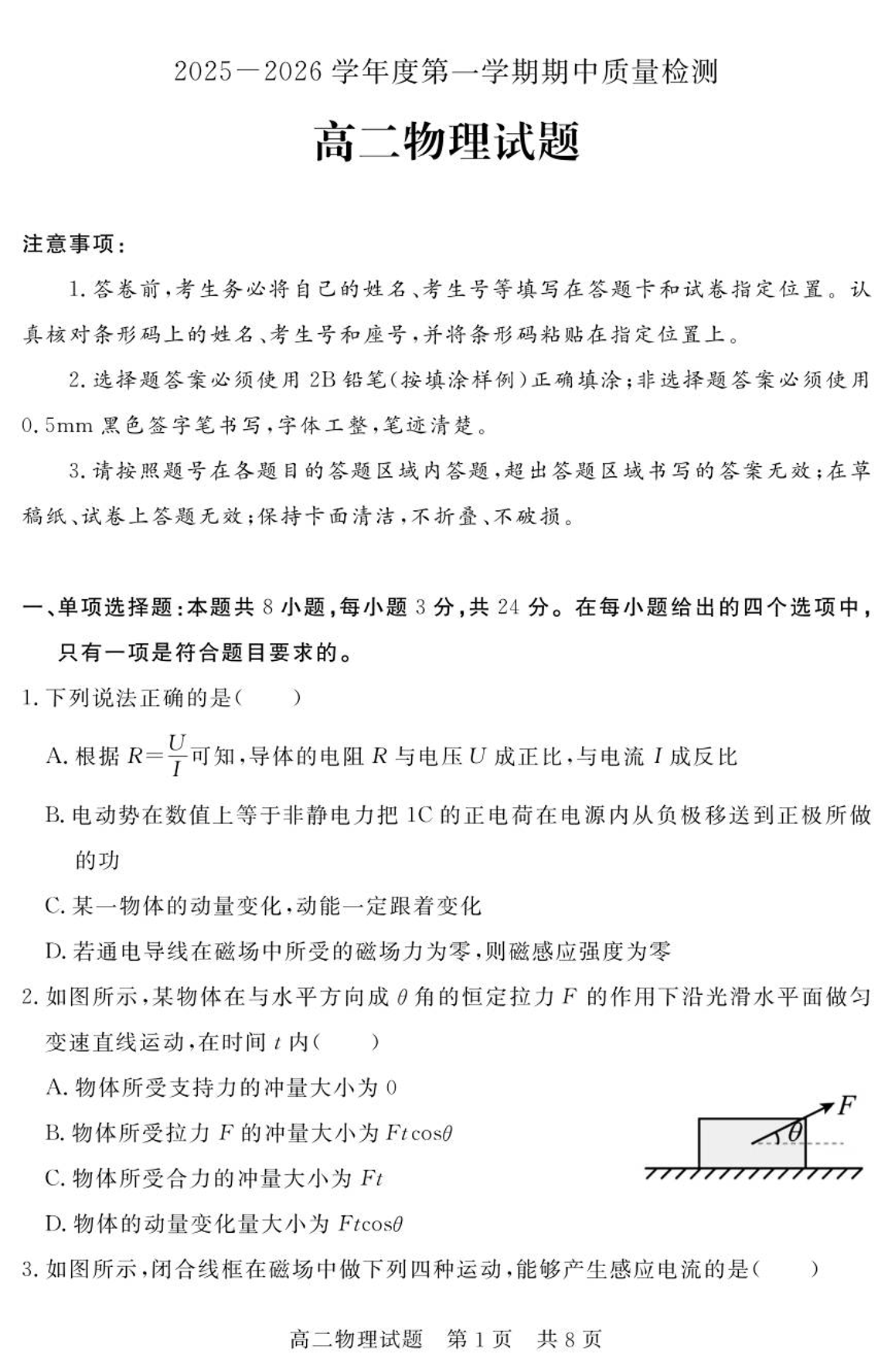 山东省济宁市兖州区2025-2026学年高二上学期期中质量检测 物理.pdf