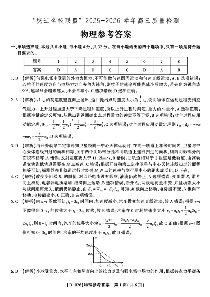 “皖江名校联盟”2025-2026学年高三质量检测 物理答案.pdf