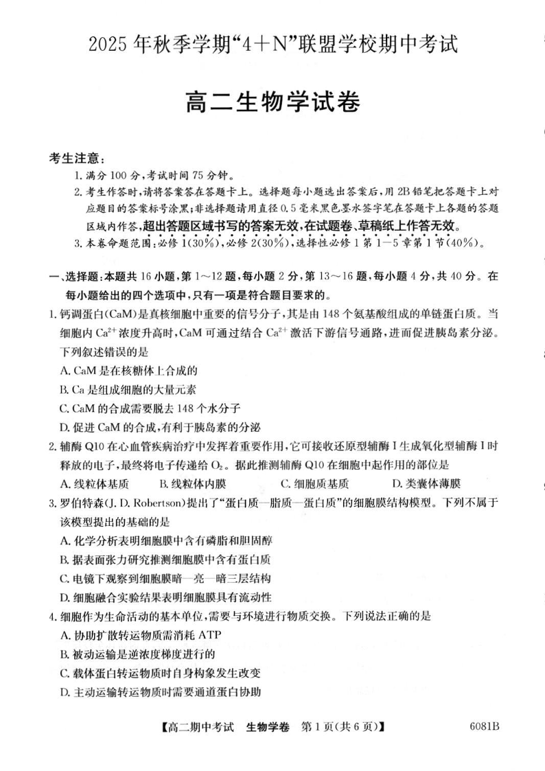 南宁市2025秋季学期4+N联盟学校高二期中考试 生物.pdf