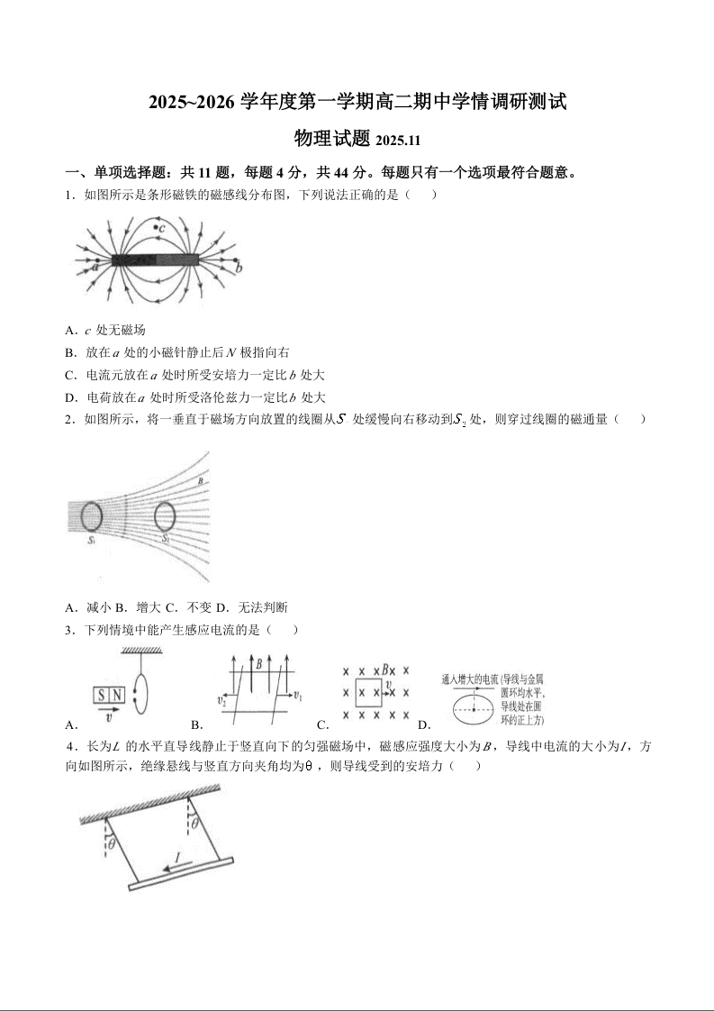 江苏省扬州市高邮市2025-2026学年高二上学期期中考试 物理试题(含答案).docx