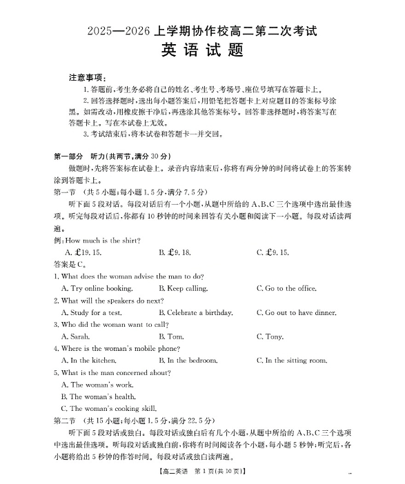 辽宁省葫芦岛市(县)2025-2026学年高二上学期协作校第二次考试 英语.pdf