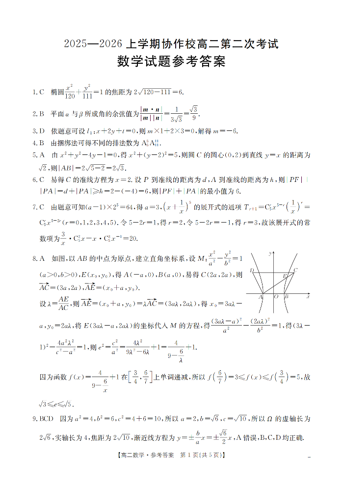 辽宁省葫芦岛市(县)2025-2026学年高二上学期协作校第二次考试 数学答案.pdf