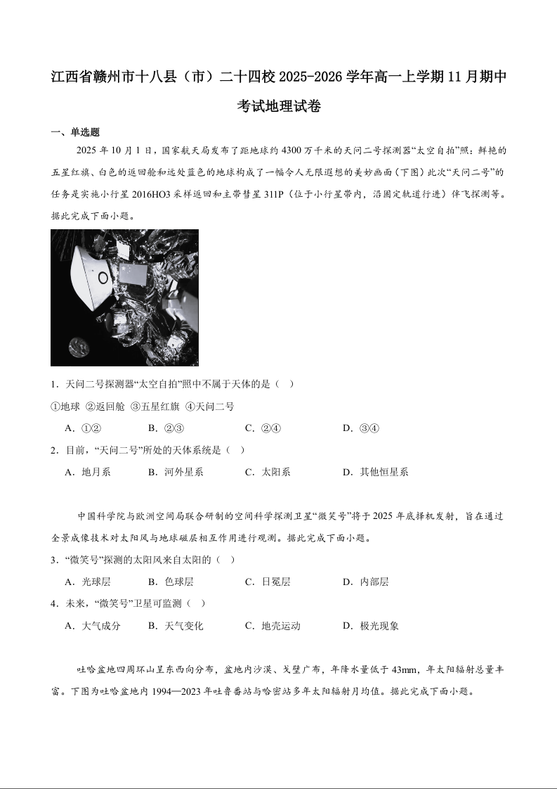 江西省2025-2026学年赣州市十八县(市)二十四校高一11月期中考试 地理试题(含答案).docx