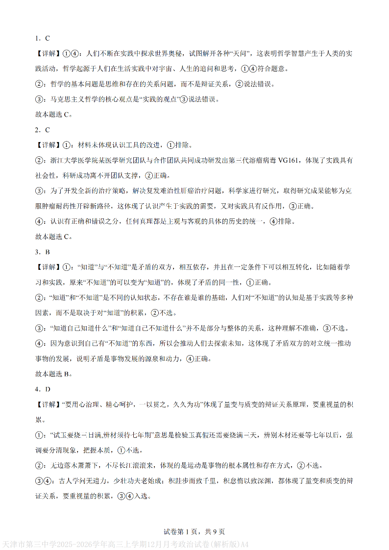 天津市第三中学2025-2026学年度第一学期高三年级12月阶段性检测 政治答案.pdf