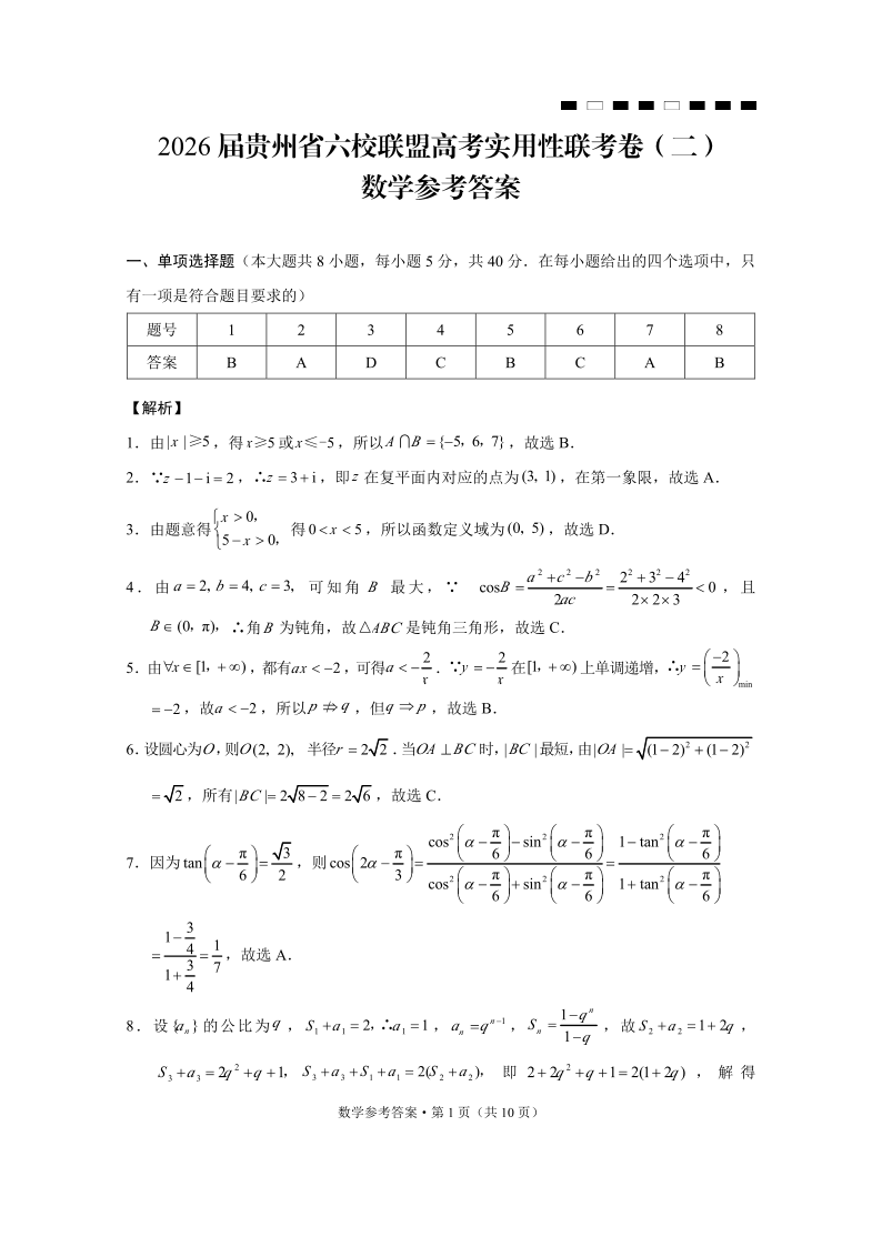 贵州省六校联盟2026届高三上学期高考实用性联考卷(二)数学答案.pdf