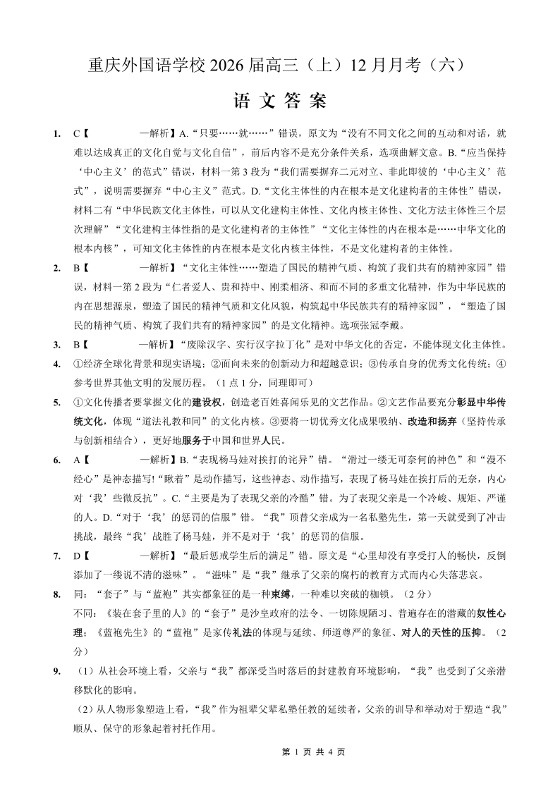 重庆外国语学校高2026届高三(上)12月月考(六)语文答案.pdf