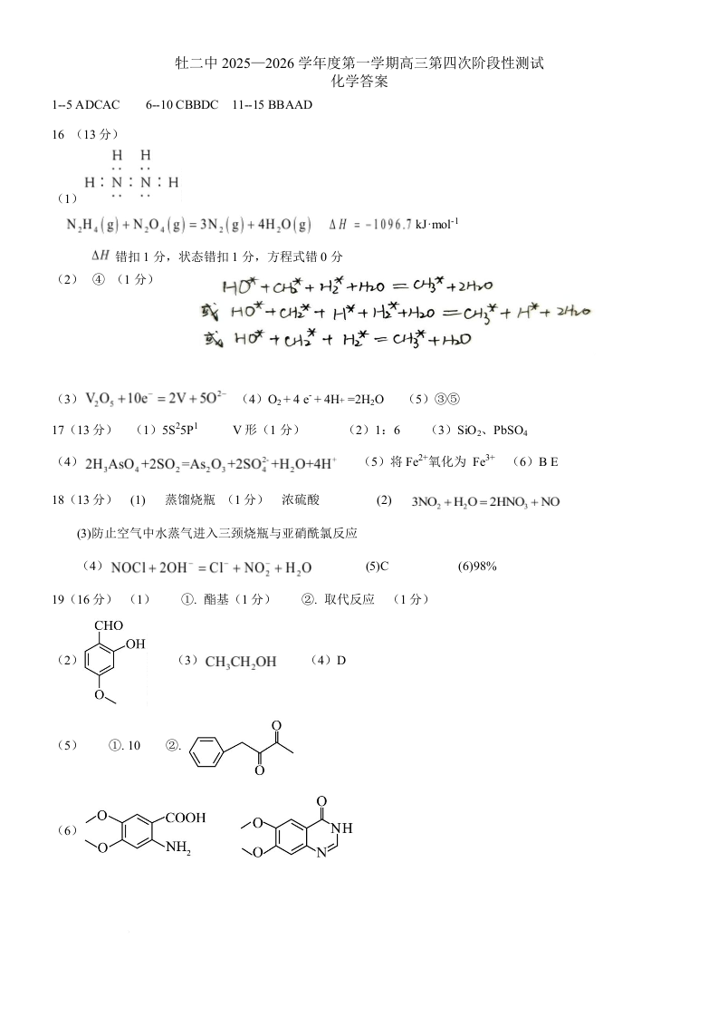 牡丹江市第二高级中学2026届高三第四次阶段性考试 化学答案.docx