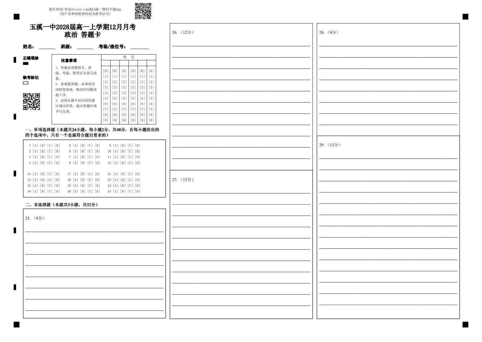 玉溪一中2025-2026学年高一上学期第二次月考 政治.pdf